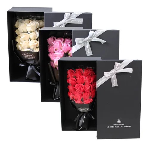 Q - Caja de regalo con rosas de petalos de jabon