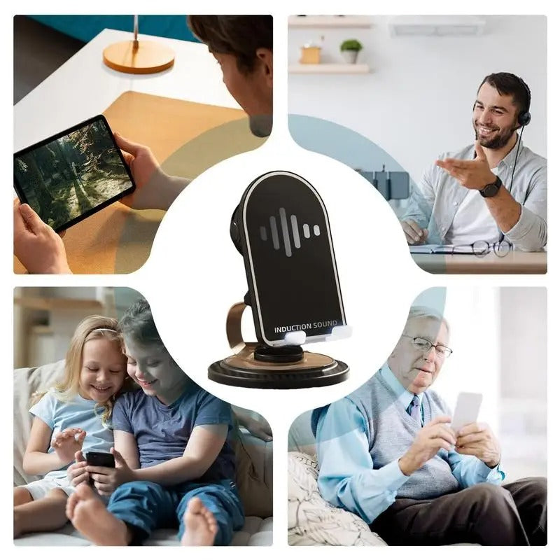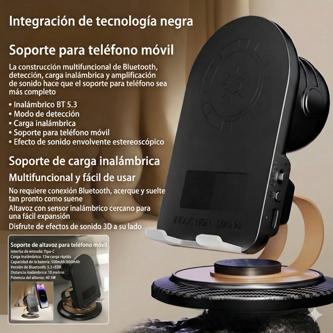 ¡Olvídate de las configuraciones! Gracias a su sensor de inducción electromagnética, solo tienes que apoyar tu celular sobre el soporte y ¡BOOM! 💥 El sonido se amplifica instantáneamente como por arte de magia. Sin cables, sin WiFi, sin esperas. Es tecnología punta: clona y potencia el sonido de tu móvil al contacto.